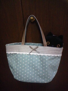 バックから、ちょこんと顔を出している黒ネコさんは、